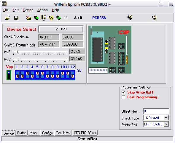 Programmer Willem EPROM 0.98D2 - Screenshot